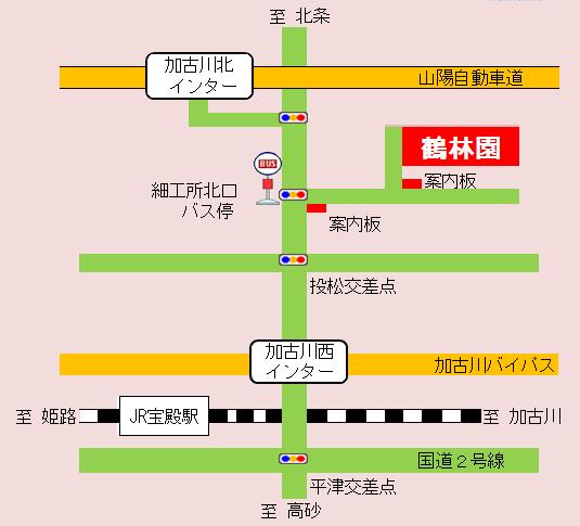 「宝殿駅北口」→(神姫バス:北条行き又は細工所北口行き)→「細工所北口」から徒歩約5分